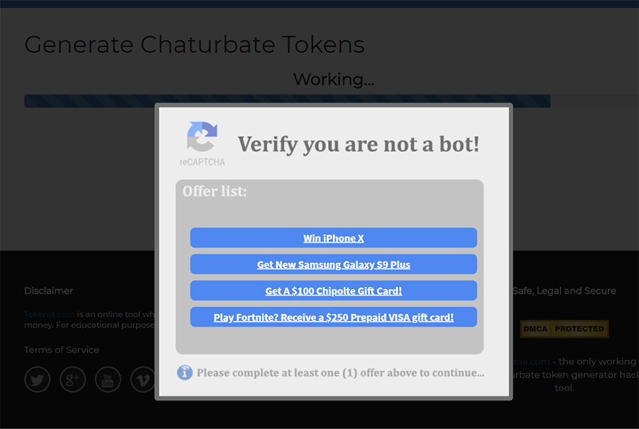 At the end of it all there will no tokens for you. You've just signed up for a bunch of crappy sites for no reason which has your information. Not to mention these sites are loaded with malware. I've taken the time to goto one of these "chaturbate token generator 2025" sites to expose these scammers for you. Let's get started...